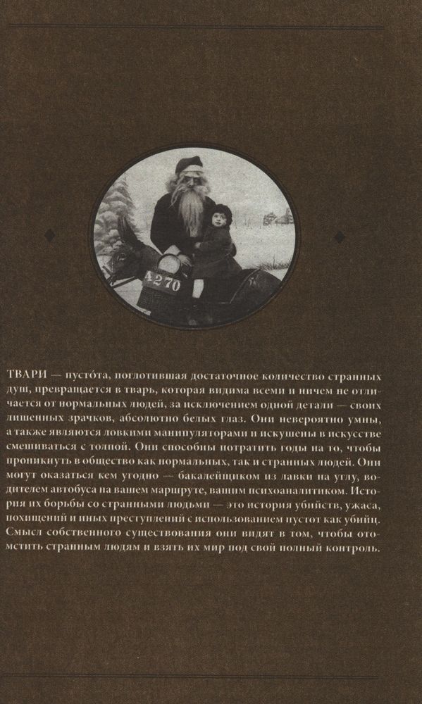 Библиотека душ. Нет выхода из дома странных детейВ данный момент этот товар отсутствует в продаже. Возможно, у нас найдется аналогичный или похожий товар здесь. Американский сценарист и писатель, которому дорогу к славе открыло увлечение старинными фотографиями. Роман о приключениях необычных подростков попал в список бестселлеров The New York Times! Веками в трущобах Дьявольского Акра хранилась Библиотека Душ великих странных. Тот, кто завладеет ею, обретет невиданную силу. Но отыскать ее может только библиотекарь… Джейкоб, Эмма и верный Эддисон ищут след похищенных странных детей. Из лондонской подземки они переносятся в викторианскую Англию, а оттуда мрачный и мудрый Харон перевозит их в место, где похитители прячут друзей. Среди руин забытого мира Джейкоба и Эмму ждут встречи с безумными странными, пустотой и человеком, который готов помочь им. Джейкоб еще не догадывается, что, спасая друзей, идет в мастерски расставленную ловушку. Ведь именно он – библиотекарь, которого так давно ищет Зло… Книга проиллюстрирована уникальными старинными фотографиями. |