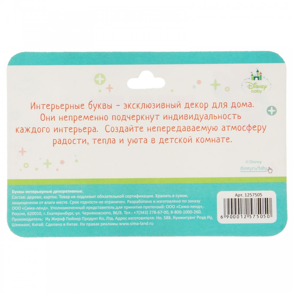 Disney Интерьерные буквы на подставке «Наша малышка»В данный момент этот товар отсутствует в продаже. Возможно, у нас найдется аналогичный или похожий товар здесь. Серия: Минни Маус Украсьте комнату малыша с Disney! |