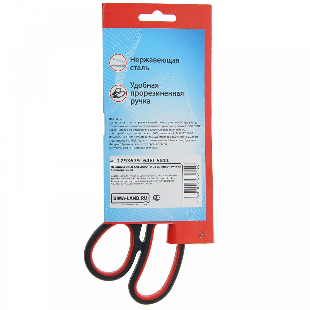 | Calligrata Ножницы «Комфорт», 21 см, эргономичные пластиковые ручки
