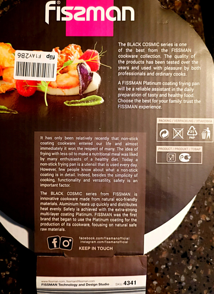 Сковорода очень понравилась. Не самое толстое дно, конечно. Но и не тонкое. Описание на английском языке. Довольно тяжёлая. Уже пекла в ней блины и делала зажарку для супа. Долго нагревается, долго держит тепло, как чугунная. Немного смутило шероховатое покрытие, какое-то необычное. Поверила описанию, соответствует тому, что на сайте. Покрытие внутри и снаружи. На дне снаружи хороший диск. Время покажет, какое качество