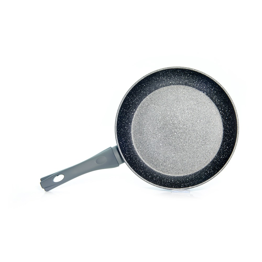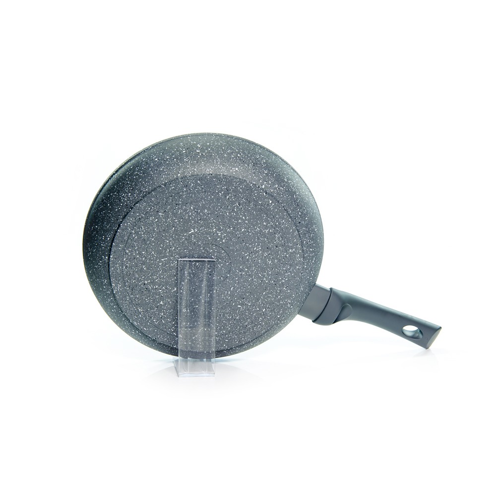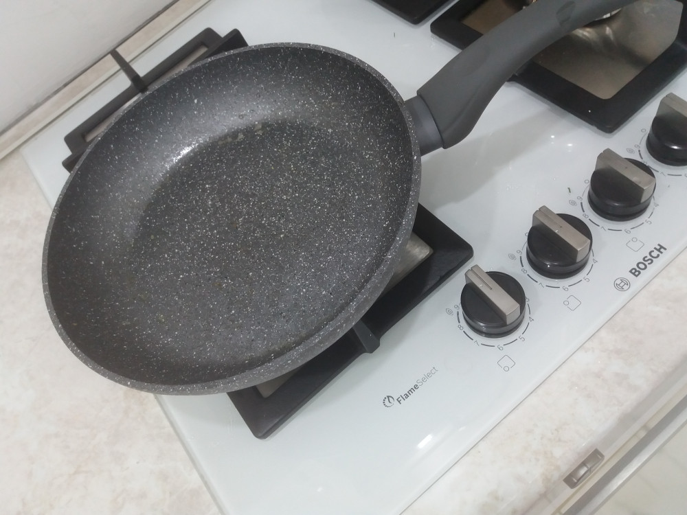 Очень нравится сковорода. "Загорелась" как увидела ее в фирменном магазине Fissman. Отлично подходит для жарки без масла. Поверхность не гладкая, а немного шероховата. 4 слоя каменной крошки. Рекомендуется использовать силиконовую лопатку, чтобы не царапать поверхность из каменной крошки.