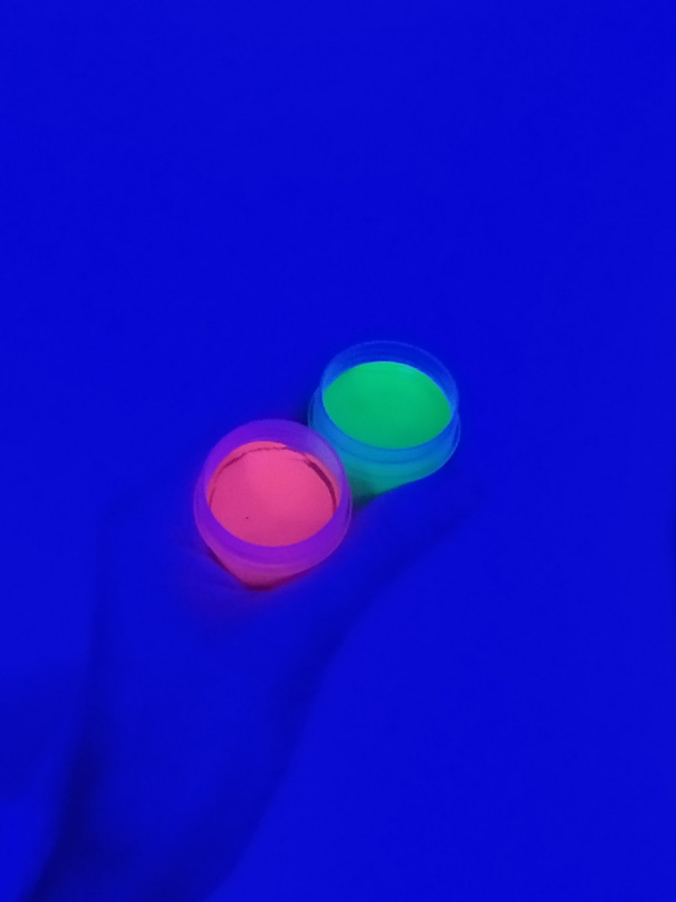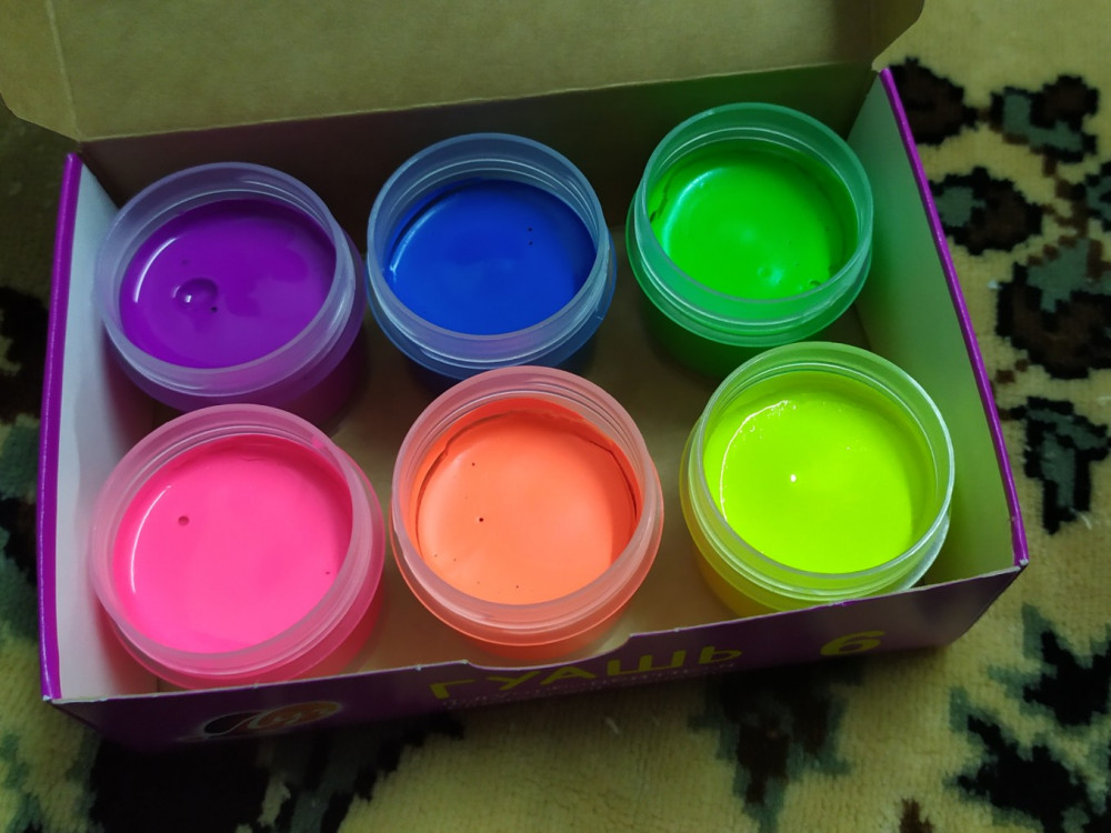 Качественные, насыщенные краски. Помимо этого гуашь более заметна в ультрафиолетовом освещении (даже от простых светодиодов). На фото сравнение с обычной гуашью. Интересный эффект, но и просто сами по себе краски красивые