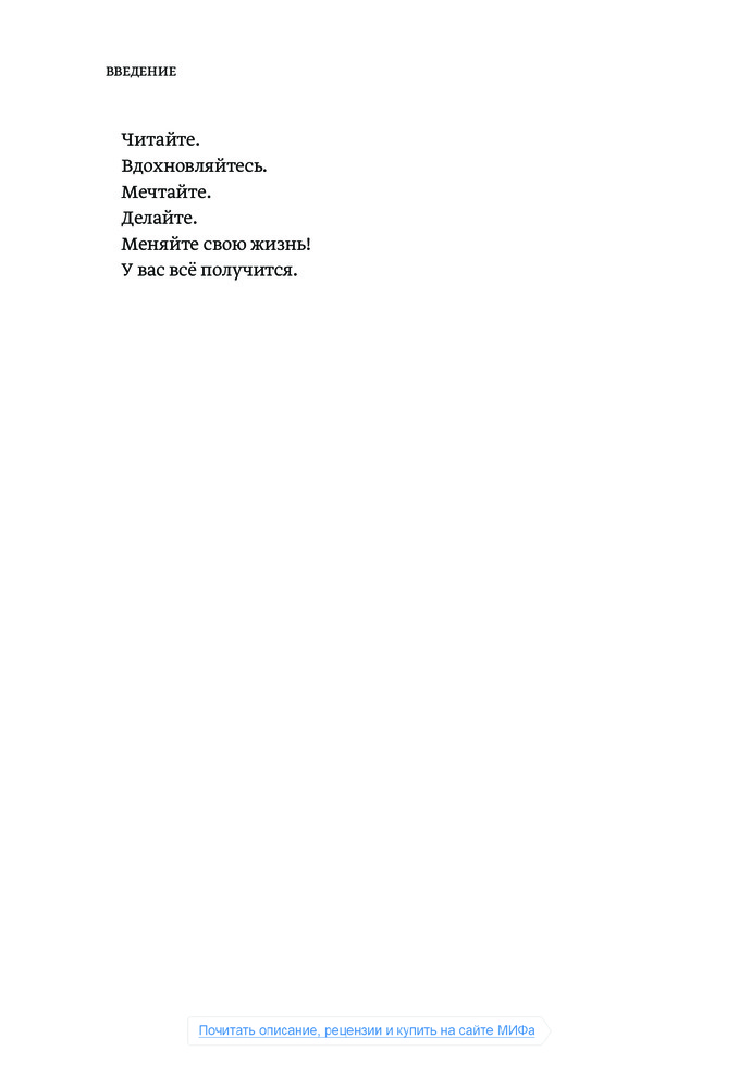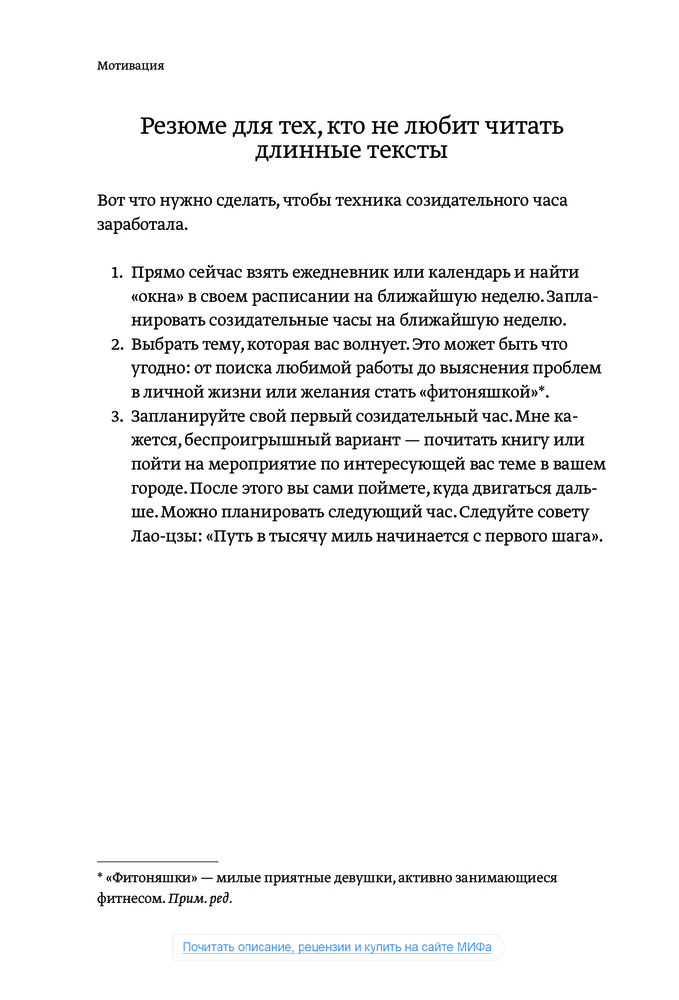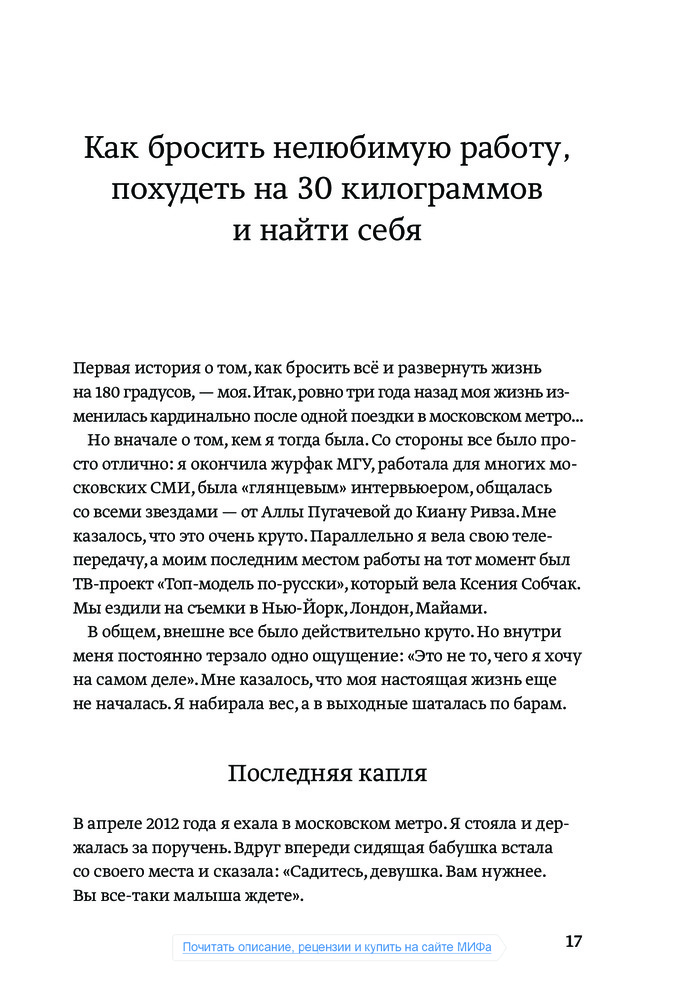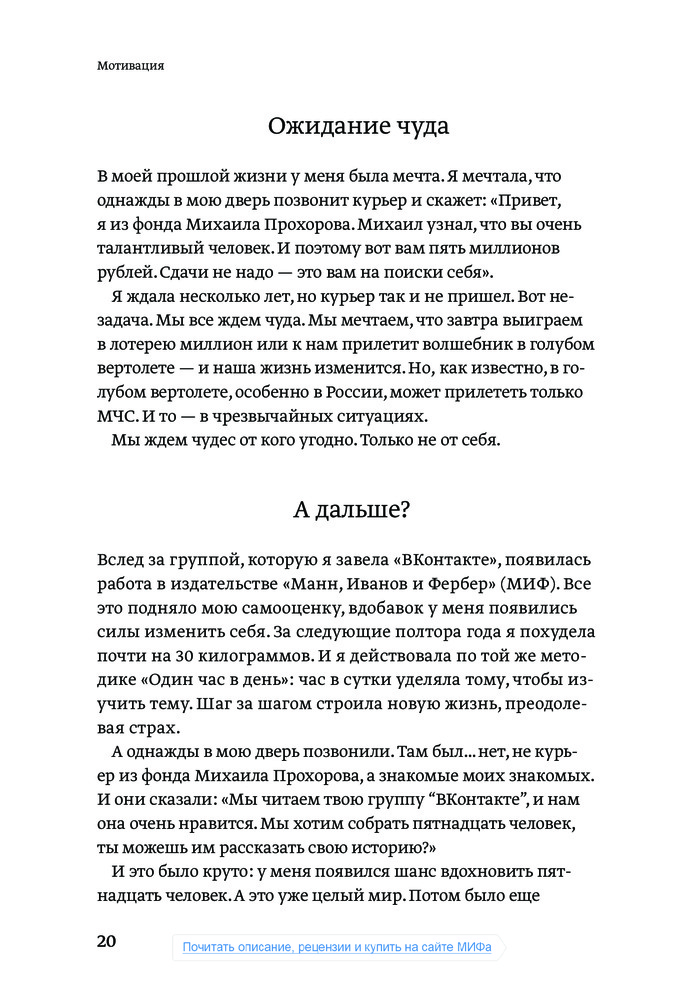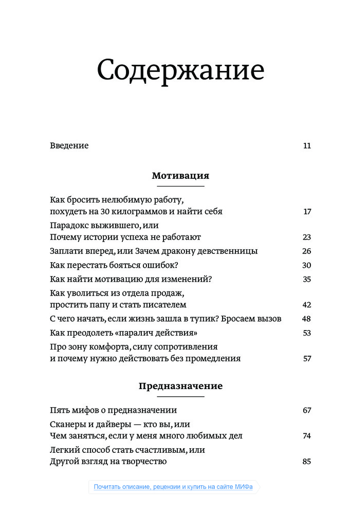 Я прочитала только треть, сразу после того, как книгу доставили, и уже залипла как заговоренная! Это просто чума, дамы и господа! Я как будто наконец поняла, как выйти из стагнации, как начать действовать и понять себя и свое призвание. Всем советую!