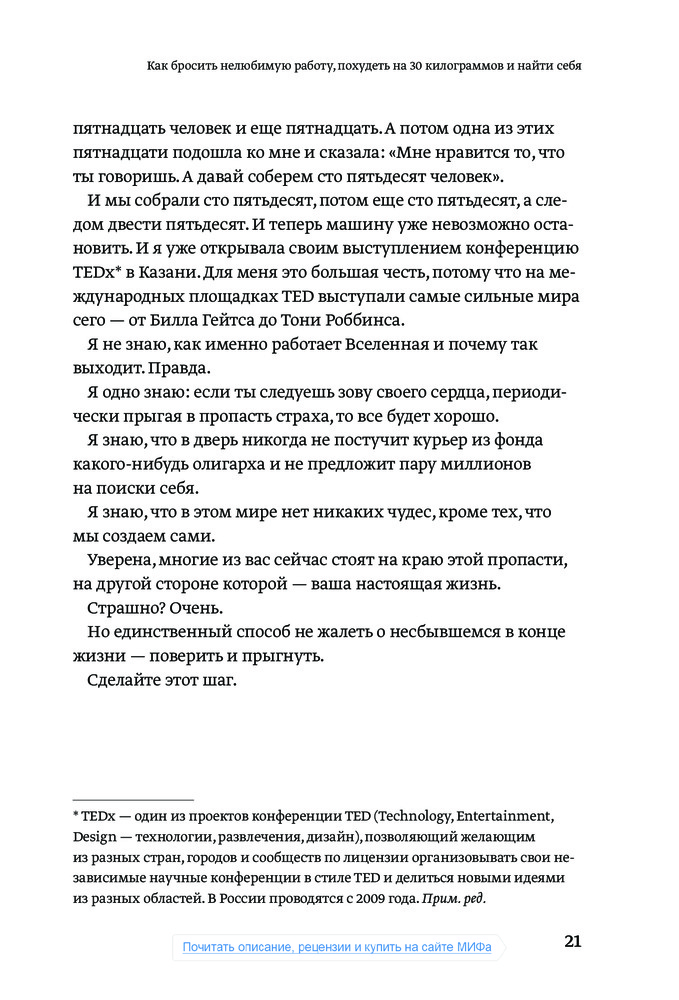 Автор книги большая умница! Можно не читать тысячу книг о самореализации, или читать, но только после того, как прочитать эту!