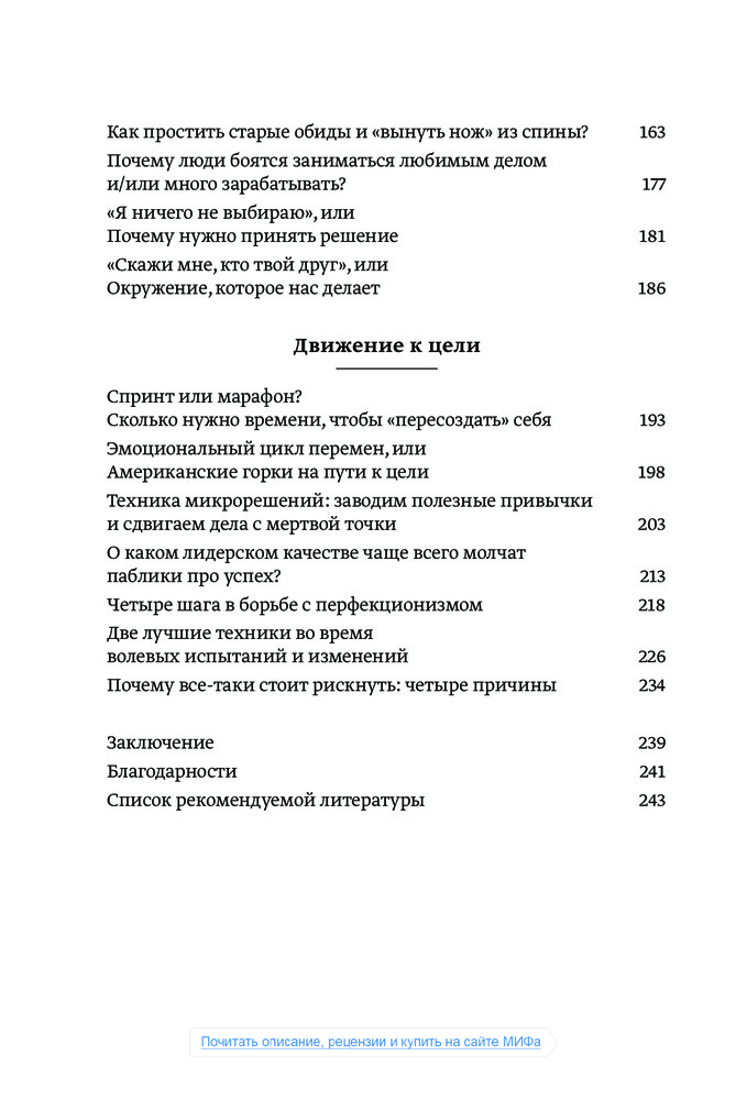Для тех, кто ищет мотивацию, находится в тупике или просто не знает, что делать - лучше книги не найти. Эту книгу я бы рекомендовал перечитывать каждый год, чтобы не забывать те истины, которые в ней описаны. Очень классная книга по данной теме.