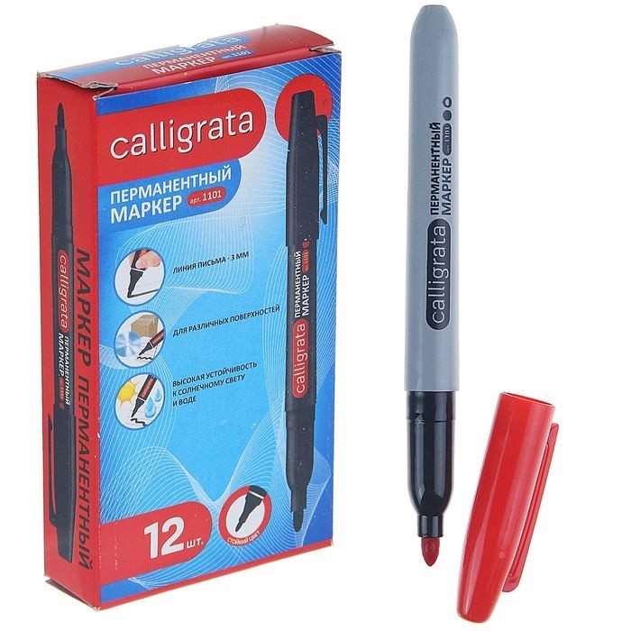 Calligrata Маркер перманентный «1101», красный-35% +2