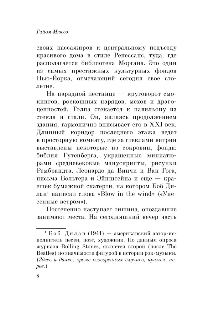 В 19 лет Гийом Мюссо на несколько месяцев уехал в Соединенные Штаты. Он открыл для себя Нью-Йорк и сразу полюбил этот город. Чтобы заработать деньги на это путешествие, он работал продавцом мороженого и жил в общежитии с рабочими самых разных национальсностей. Сейчас он говорит,... |