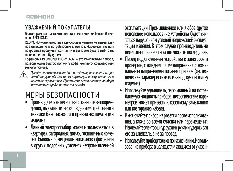 Redmond Кофемолка RCG-M1602В данный момент этот товар отсутствует в продаже. Возможно, у нас найдется аналогичный или похожий товар здесь. Ничто не сравнится с чашечкой ароматного горячего кофе, приготовленного из зерен свежего помола. C ротационной кофемолкой REDMOND RCG-1602 в этом легко убедиться. Лезвия из нержавеющей стали измельчают кофейные зерна быстро и эффективно. В целях безопасности прибор оснащен защитой от случайного включения. |