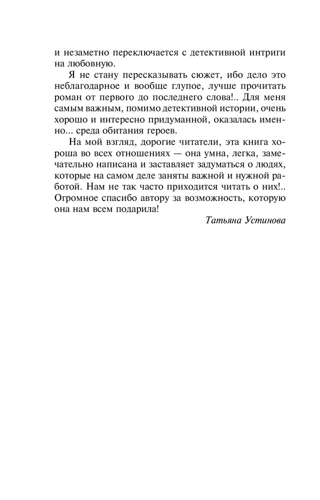 Сильнее неземной любвиВ данный момент этот товар отсутствует в продаже. Возможно, у нас найдется аналогичный или похожий товар здесь. Серия: Татьяна Устинова рекомендует Лиза всегда недолюбливала Влада, друга ее мужа Кости. Влад казался ей скользким неприятным типом. Тем не менее, известие о том, что Влада убили, прозвучало громом среди ясного неба! Как выяснилось, интуиция не обманула Лизу — любимым развлечением Влада были злые розыгрыши и жестокие шутки, жертвами которых чаще всего становились его друзья. И у одного из них, похоже, чаша терпения переполнилась... В сумке мужа Лиза случайно обнаружила ноутбук, очень похожий на тот, что пропал из квартиры Влада после его гибели. Неужели Костя замешан в гибели своего товарища? |