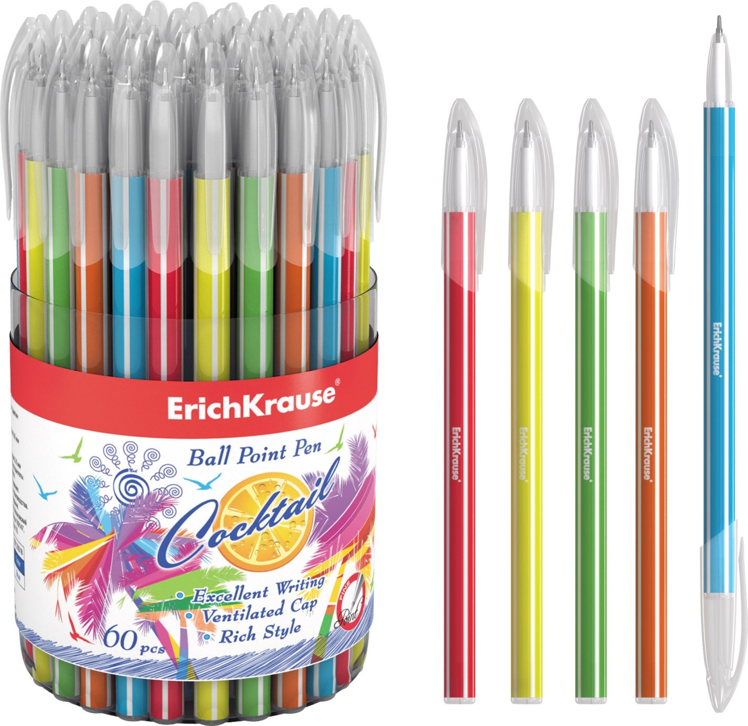 Erich Krause Ручка шариковая «COCKTAIL», узел-игла, 0.6 стержень синий (микс 5 видов)-30% +2 тонкая линия прочный корпус длительная паста пишет хорошо
