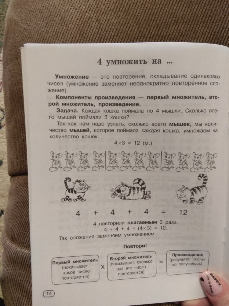 Тетрадь понравилась. В первый же день занятий выучили умножение на 2. Причем ребенок запомнил его очень качественно и помнит умножение на зубок. Надеюсь, что следующие числа освоятся также легко.