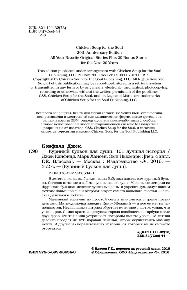 Куриный бульон для души. 101 лучшая историяМарк Виктор Хансен, Джек Кэнфилд -20% +90 душевные истории качественная бумага короткие рассказы легкое чтение