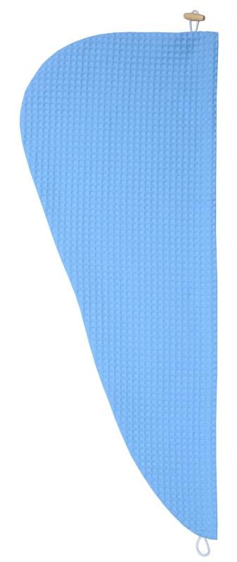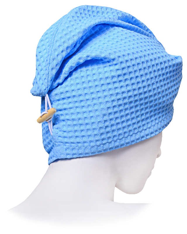 Отличная чалма, мягкая вафельная ткань, приятный, голубой цвет. Очень хорошо впитывает воду и затем быстро высыхает, удобна в использовании.