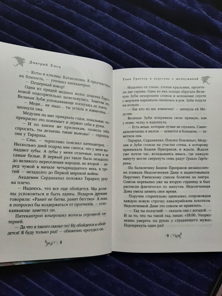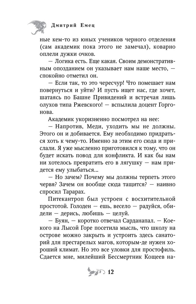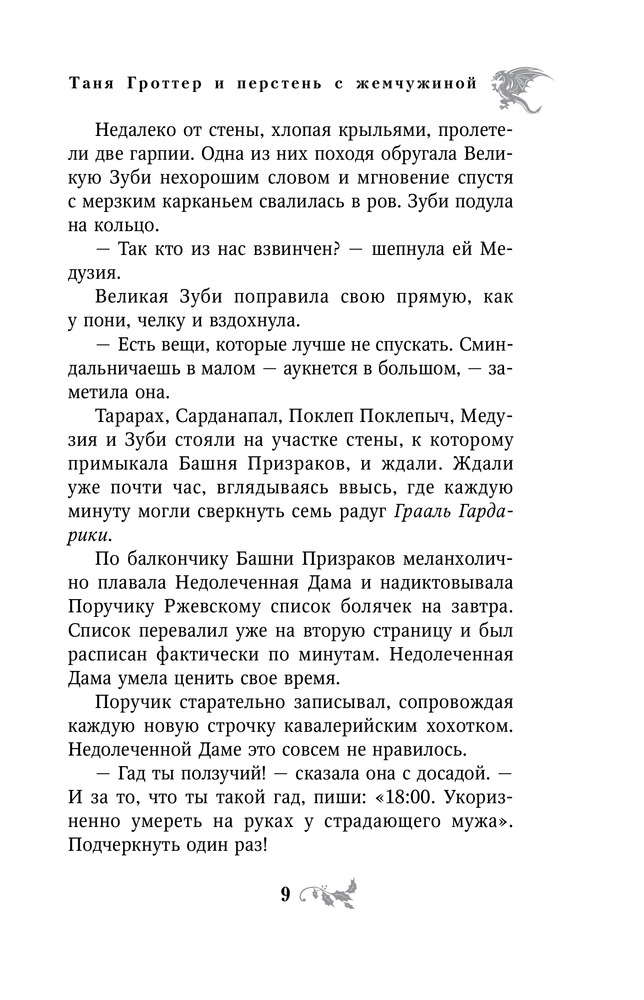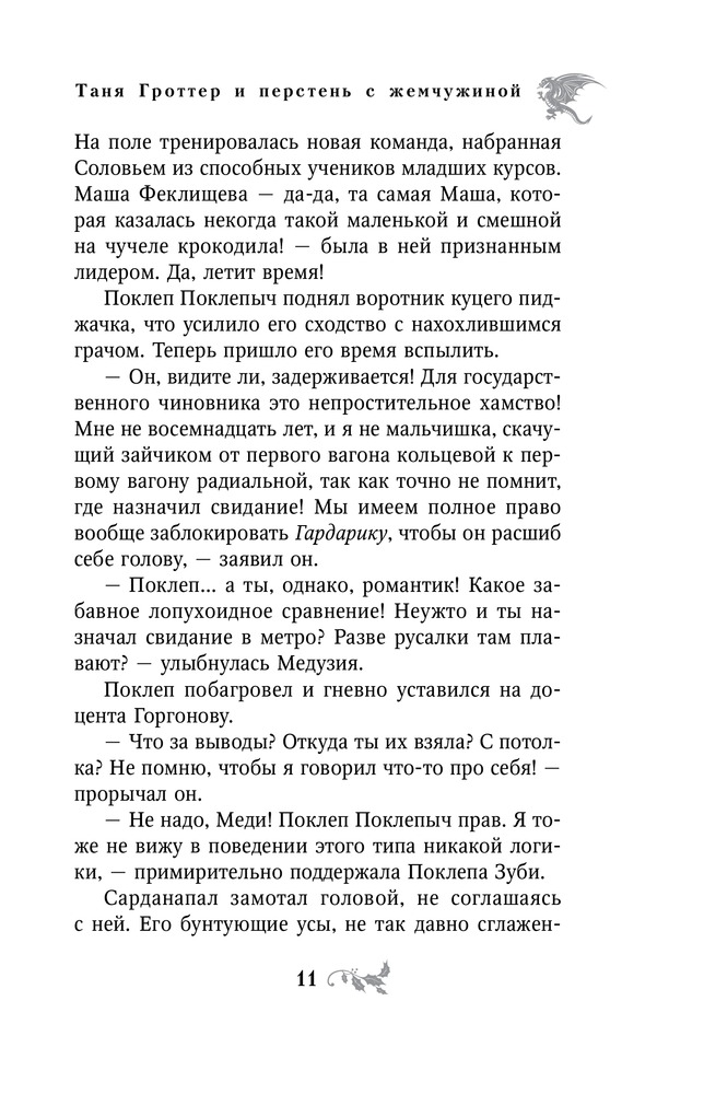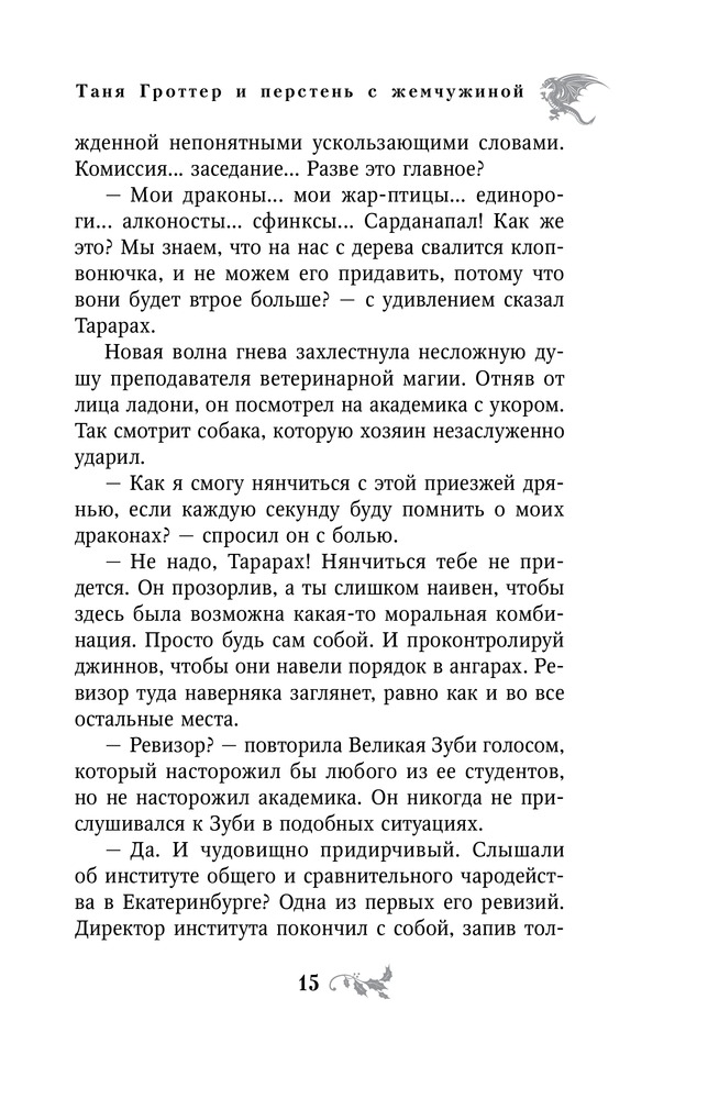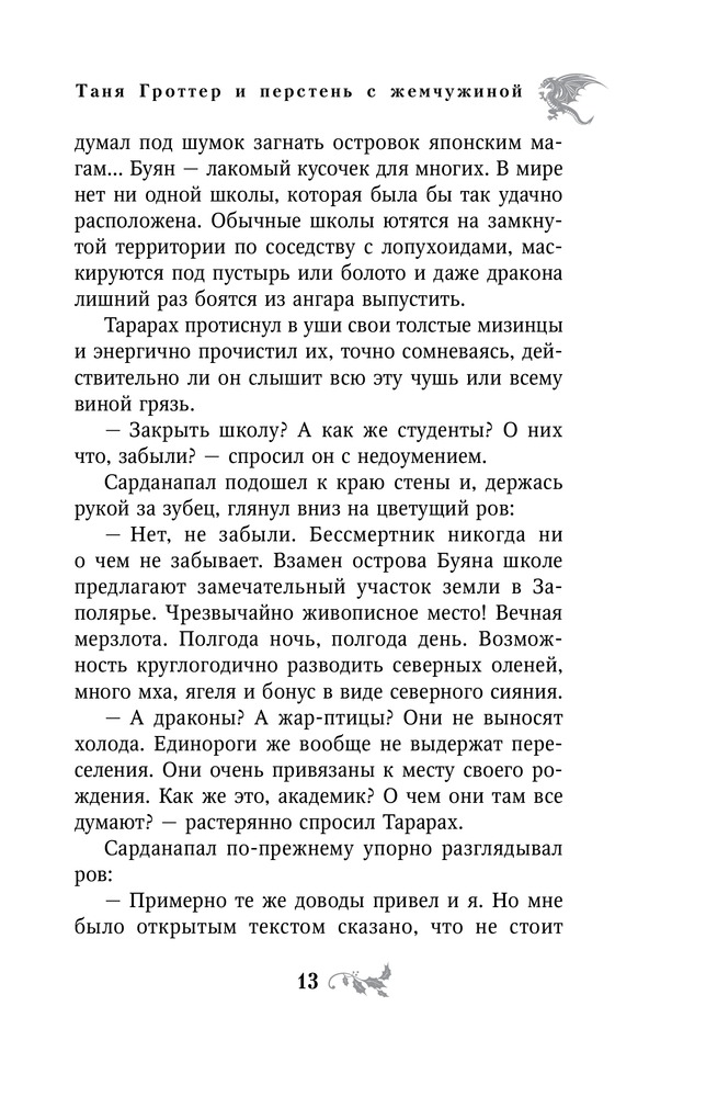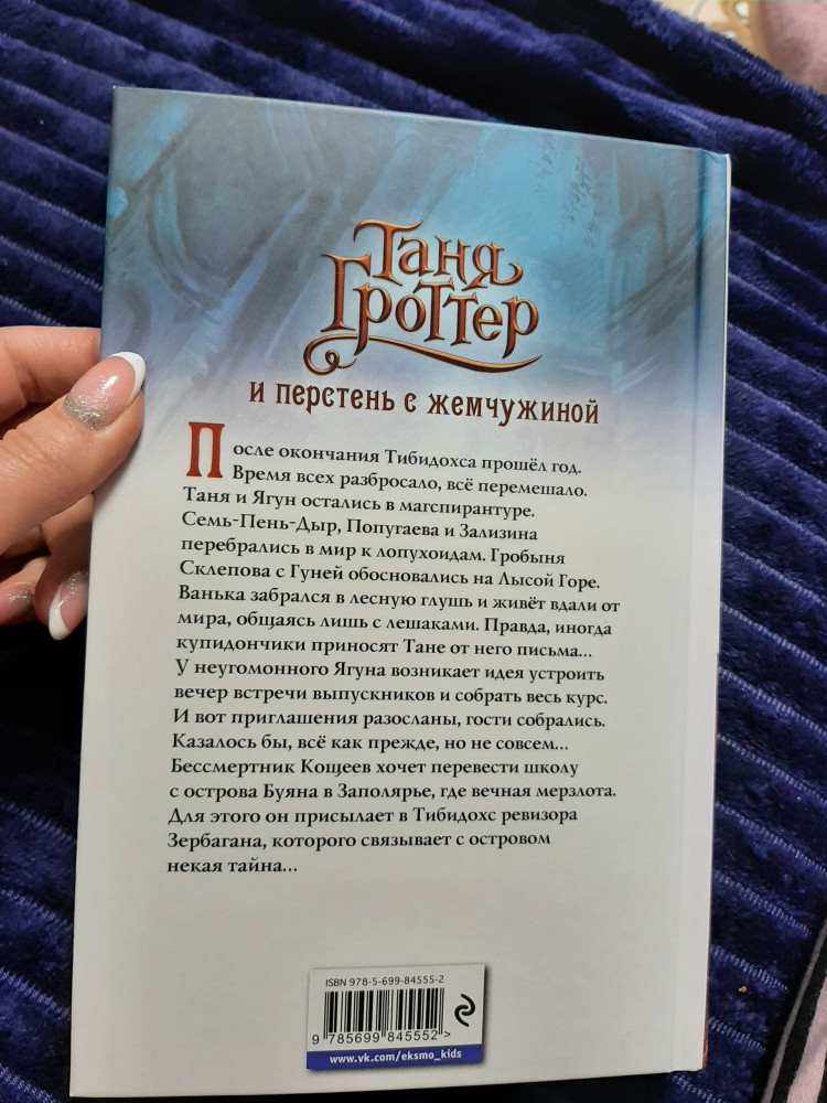 Таня Гроттер и перстень с жемчужинойВ данный момент этот товар отсутствует в продаже. Возможно, у нас найдется аналогичный или похожий товар здесь. Серия: Таня Гроттер. Легендарное детское фэнтези После окончания Тибидохса прошел год. Время всех разбросало, все перемешало. Таня и Ягун остались в магспирантуре. Семь-Пень-Дыр, Попугаева и Зализина перебрались в мир к лопухоидам. Гробыня Склепова с Гуней обосновались на Лысой Горе. Ванька забрался в лесную глушь и живет вдали от мира, общаясь лишь с лешаками. Правда, иногда купидончики приносят Тане от него письма... У неугомонного Ягуна возникает идея устроить вечер встречи выпускников и собрать весь курс. И вот приглашения разосланы, гости собрались. Казалось бы, все как прежде, но не совсем... Бессмертник Кощеев хочет перевести школу с острова Буяна в Заполярье, где вечная мерзлота. Для этого он присылает в Тибидохс ревизора Зербагана, которого связывает с островом некая тайна... |