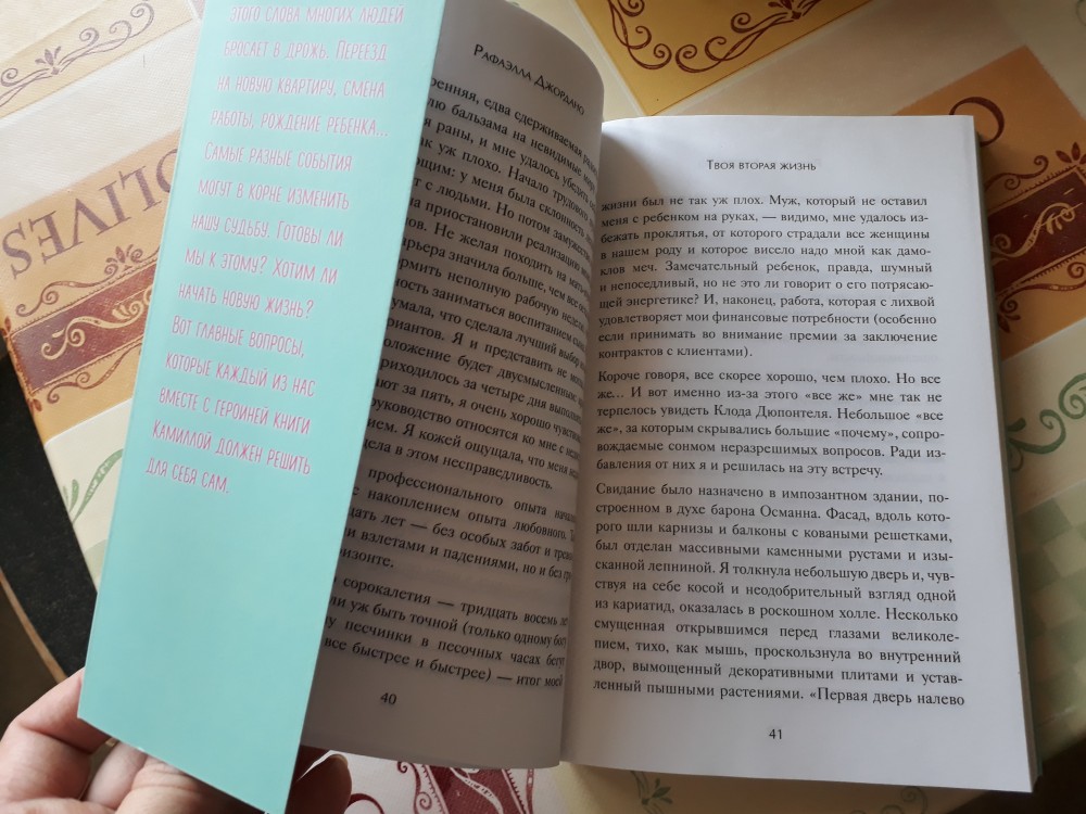 Книга хорошая, рекомендую почитать всем женщинам, даже если и так все в жизни хорошо, я уверена, для себя каждая найдет что-то полезное. Я заказала в подарок сестренке и пришлось прочесть книгу быстро, а ей посоветую не спешить и пройти тренинг вместе с главной героиней. Очень довольна и содержанием, и оформлением книжки, приятно держать в руках, страницы белые, шрифт хороший, и обложка с загибами очень удобная, закладка не нужна! А сервис Флип, как всегда, безупречен! Спасибо!