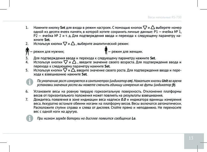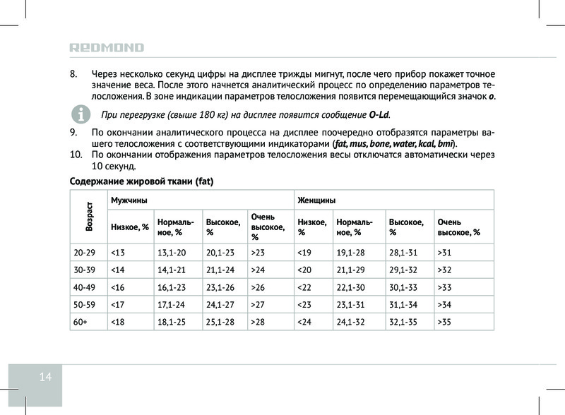 Весы очень функциональны и качественны, определяет в соответствии с ростом и возрастом вес, содержание жира, мускулов, воды, индекс массы тела, калории. В инструкции есть расчётные нормы для сравнения показателей. Очень довольна, рекомендую.