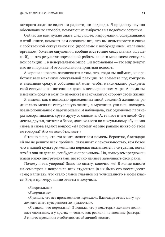 Книга читается легко. Мне была очень полезна, так как совмещала ее с техниками по раскрытию сексуальности. Интересная.