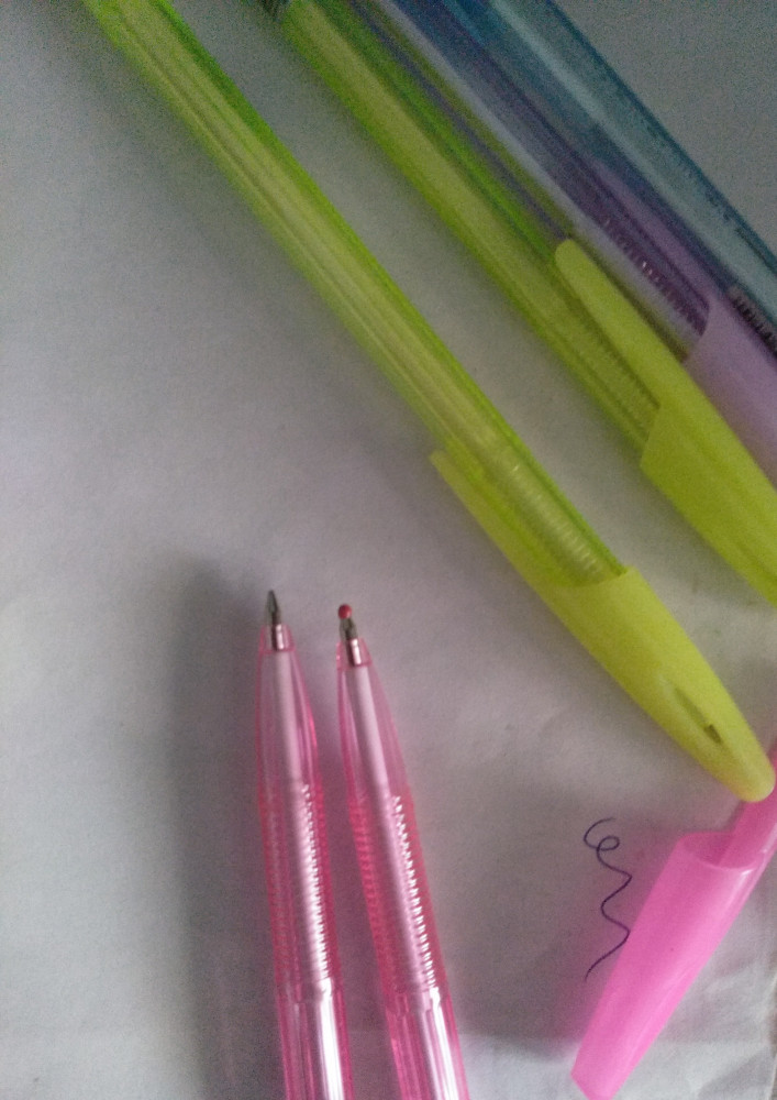 Ручки пришли все целые, колпачки надеваются очень плотно, на стержнях защитная капля не знаю чего от протекания. Цвет паствы приятный,, пишет легко, бумагу не царапает, надеюсь, хватит надолго. Купила для сына студента, у него писанины много)) Из 10 штук 3 ручки были с корпусом розового цвета, сын от них отказался, мои будут)
