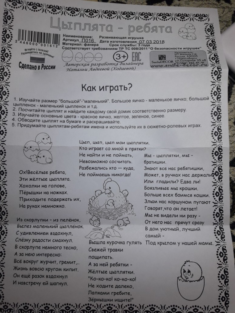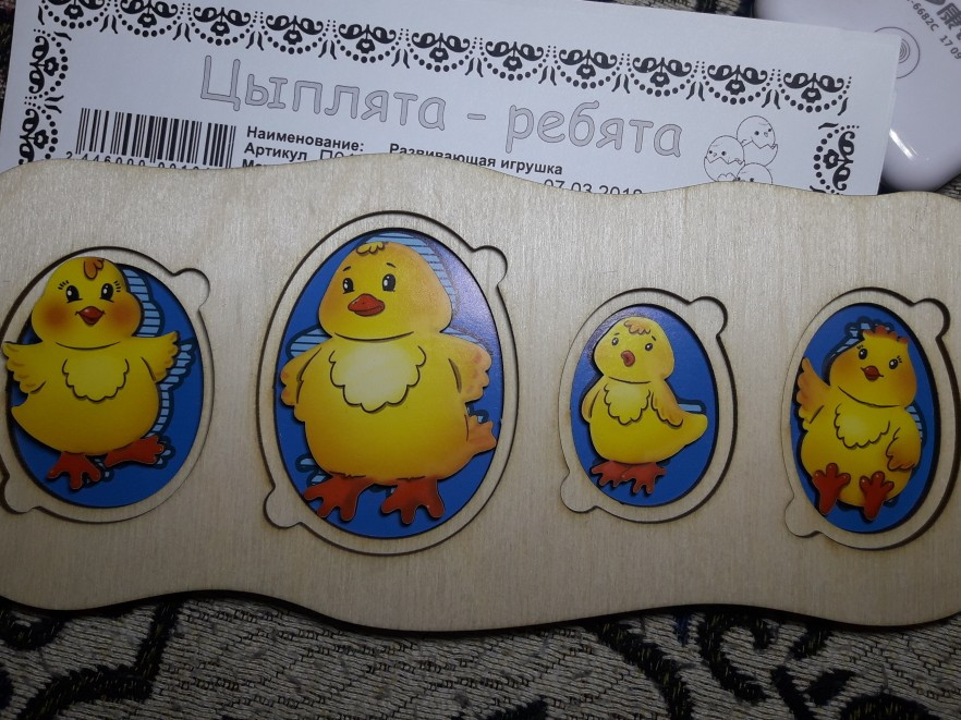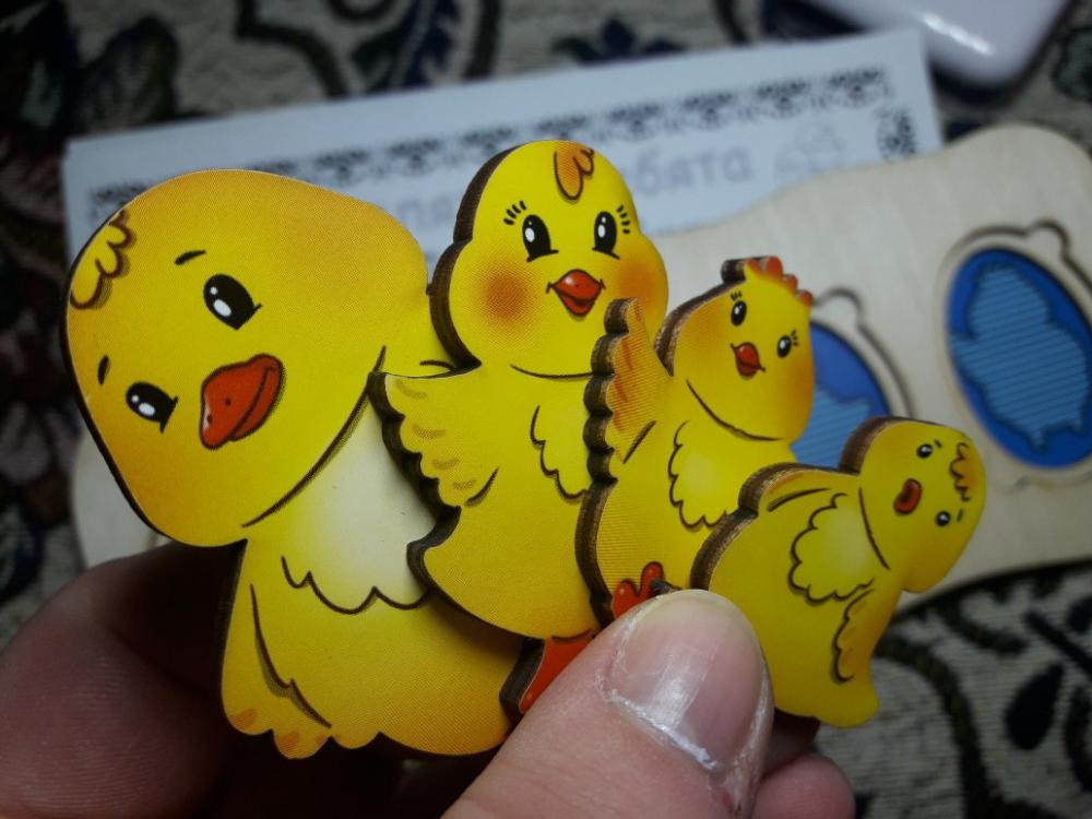 Игрушка понравилась очень, ребенок 1 год играет с удовольствием, пусть и с помощью мамы))) Игра надолго, и цвета, и размеры, и истории разные про цыплят придумывать, здорово, 5+