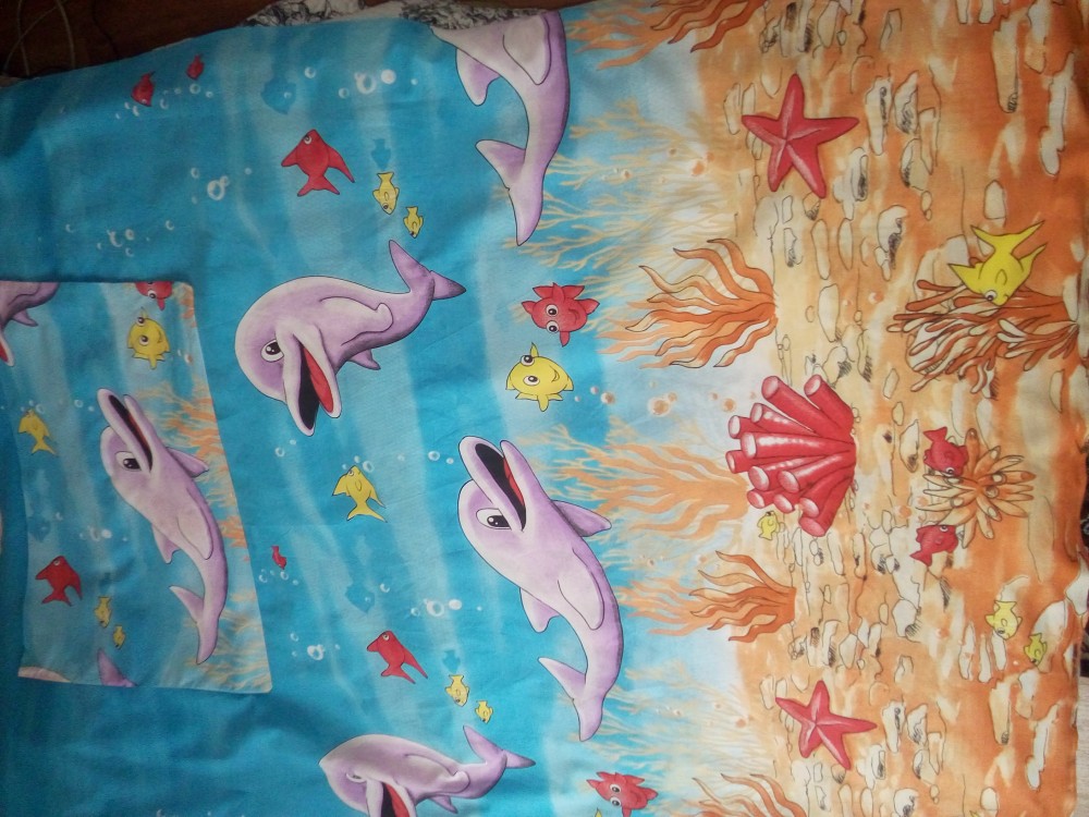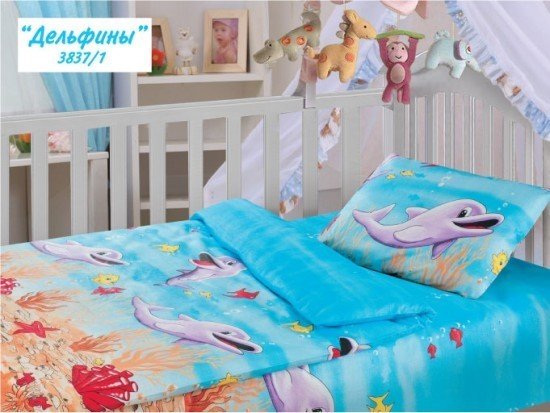 Комплект постельного белья для детской кроватки «Дельфины» изготавливается из ткани бязь-люкс, по образцу лучших итальянских тканей. Она намного нежнее и тоньше обычных бязей, но при этом плотная и прочная. Бязевое постельное белье легко стирается, гладится и долго сохраняет цвет и прочность при многочисленных стирках.