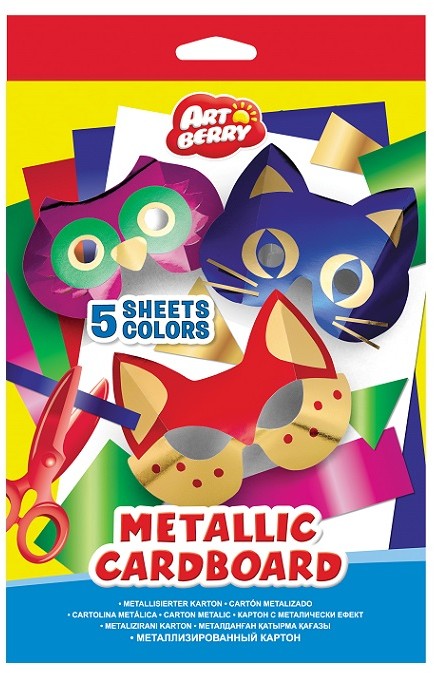 Гладкая блестящая поверхность металлизированного картона сделает любую поделку привлекательной и нарядной. Выбор ярких, насыщенных цветов расширит возможности для создания аппликаций и объемных поделок.