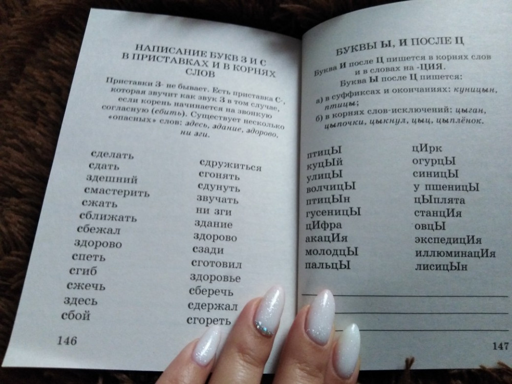 Хорошее пособие, хотя заданий как таковых нет, просто группы слов, объединенных одним правилом. Надеялась, что там упражнения с пропущенными буквами...