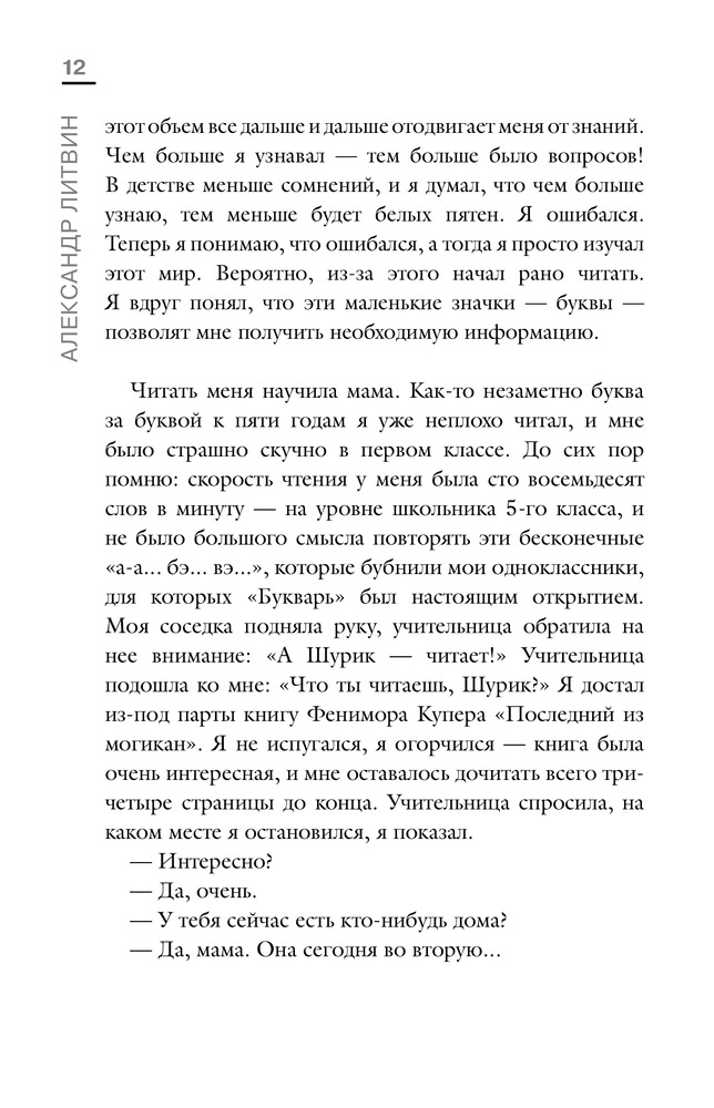 Книга очень понравилась, вычитала для себя интересные моменты, заставляют задуматься, проанализировать некоторые вещи. А. Литвин - интересная личность, многогранная, образованная. Рекомендую эту книгу читателям.