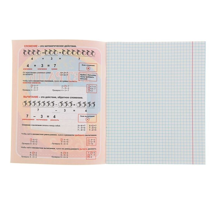 Очень четкая и яркая клетка, есть подсказки, самое то для начальной школы, но обложка очень тонкая, легко рвётся и быстро изнашивается, но спасает гелевая обложка