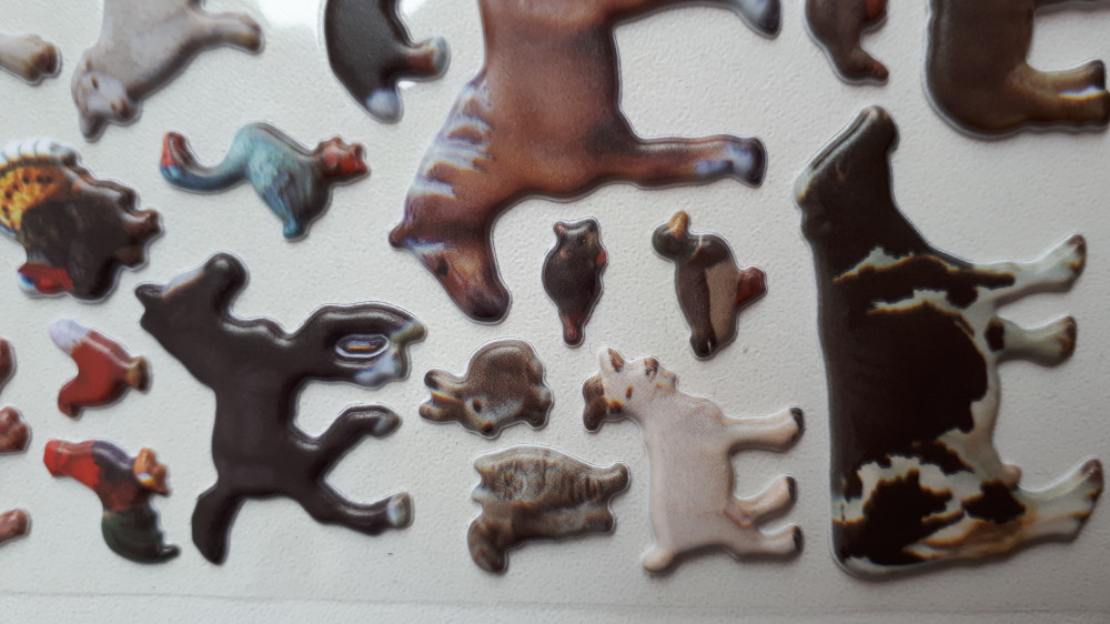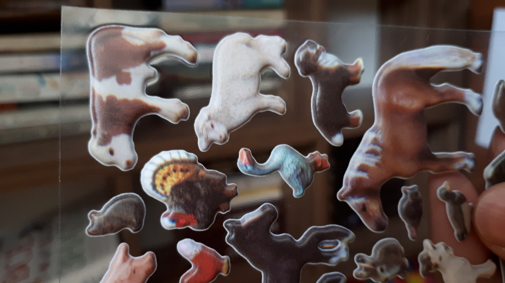 Эти наклейки такие крохотные((( прикладываю на лист а4. Качество картинки оставляет желать лучшего, размыто ничего не видно. Для малышей с целью изучения животных абсолютно не подходит. Деткам постарше, забавы ради клеить, просто так - подойдет. Ээх, надо было смотреть внимательнее. Ставлю 1 звезду из-за низкого качества картинки.