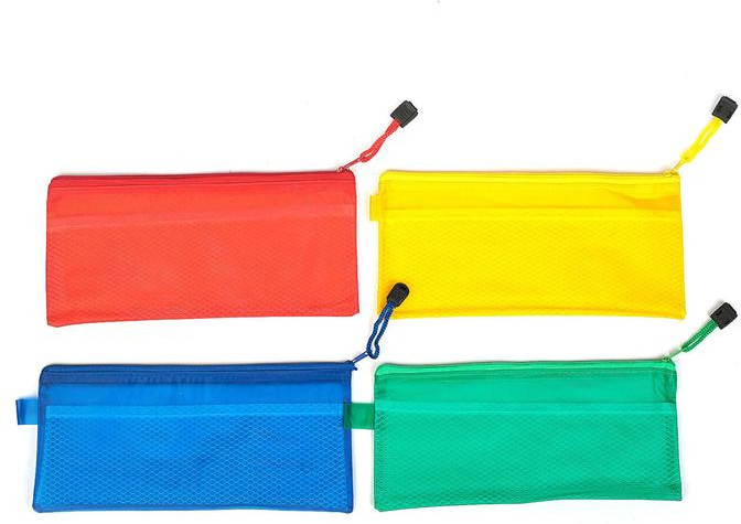 Папка-конверт на молнии формат А5, с сеткой внутри, 24х11cм, цвет в ассортименте-25% +18