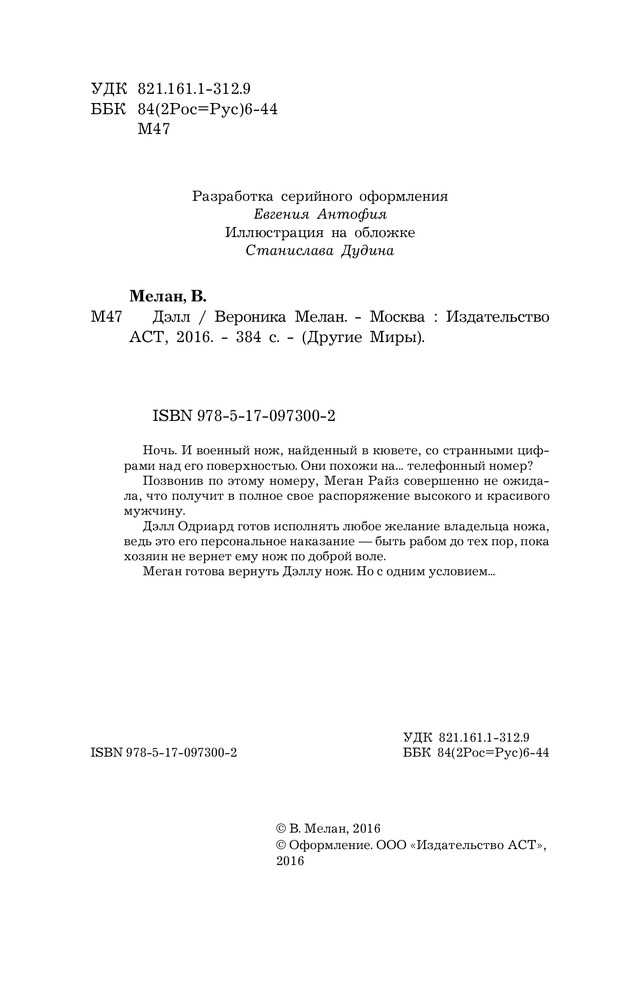 Счастья полные штаны! Давно слежу за творчеством Вероники Мелан, безумно рада, что удалось приобрести бумажную версию. Они пополнят мою полку для любимых книг. "Дэлл" мне понравился с первого прочтения, иногда перечитываю. Меган просто нереальный персонаж. В основном читаю из-за нее, и да, все книги из серий "Город" затягивают. Сама идея создания другой вселенной, многим похожей на нашу - отлично придумано Вероникой Мелан. Спасибо большое!