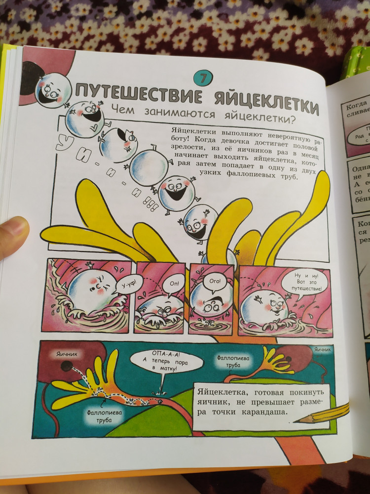 Купила книгу, т.к. ребенок стал задавать вопросы, а я не знала, как деликатно ей ответить. Нам понравилась книга. Дочка 8,5 лет заинтересовалась. Иногда читает, потом мы обсуждаем, если ей что-то непонятно. Радует, что автор раскрывает темы с разных сторон. Иллюстрации тоже понятные, яркие. Магазин Флип быстро доставил мой заказ. Спасибо Вам.
