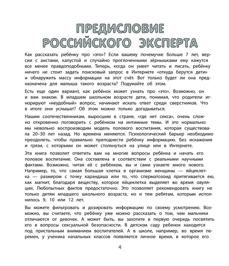 Очень достойная книга, все доступно и понятно. Для совместного чтения с детьми достигшими возраста, когда уже ответы на определенные вопросы, нужно давать правильно.