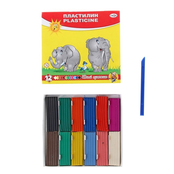 Гамма Пластилин «Юный художник», 12 цветов, со стеком, 168 гр-25% +43