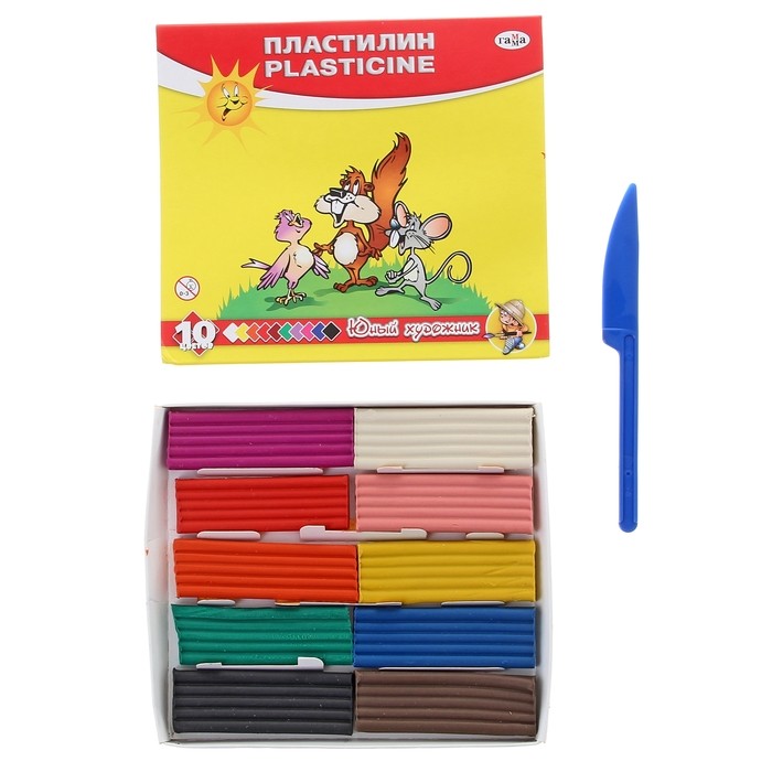 Гамма Пластилин «Юный художник», 10 цветов, со стеком, 140 гр-25% +38