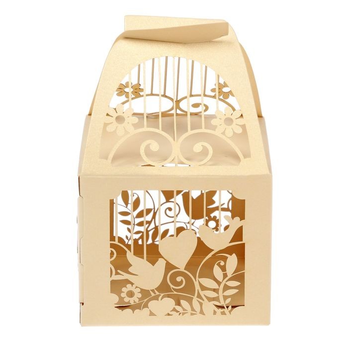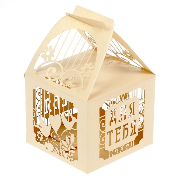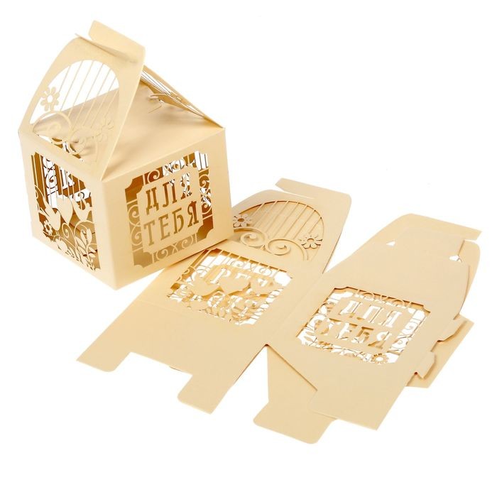 Бонбоньерка с резными элементами легко складывается. Функциональный размер коробочки — 7 × 7 × 6 см.