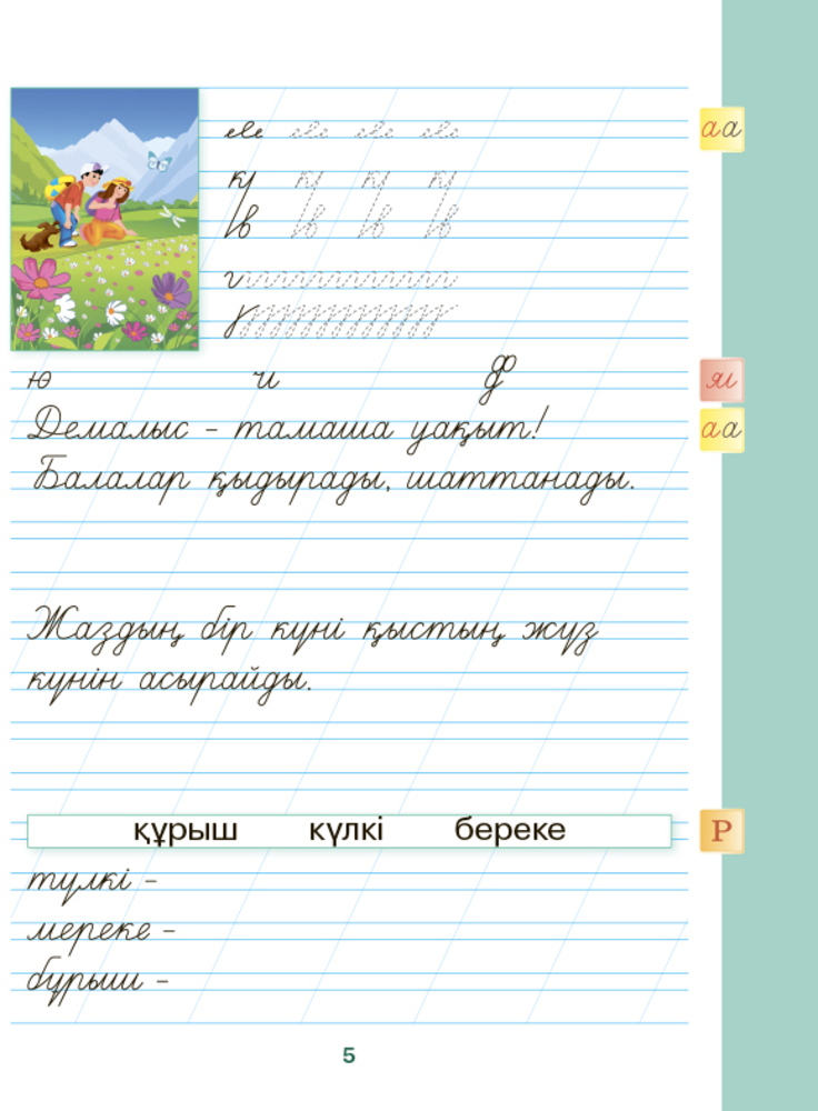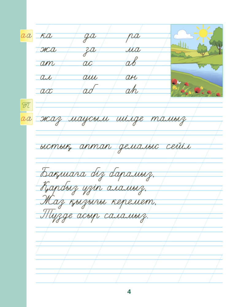 Көркем жазу. 1-ші саты. Жасыл әлем. 1 сыныпВ данный момент этот товар отсутствует в продаже. Возможно, у нас найдется аналогичный или похожий товар здесь. Серия: Рабочие тетради 1 класс «8&8» Бұл құрал әріптердің кескіні мен оларды қосып жаза алуды білетін, жазу дағдыларын меңгерген кіші жастағы балалардың ұқыпты, анық жазуды қалыптастыруға арналған. Басылым бастауыш мектептің оқушыларына арналған көркем жазу құралдар топтамасына кіреді (1, 2-ші саты құралы – тар сызықтар, 3-ші саты – кең сызықтарға арналған). Құралды сабақ барысында көркем жазу минуттарына, қосымша сабақтар мен үйде қолдануға болады. |