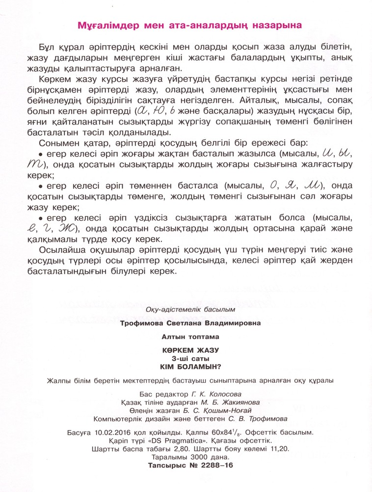 Отзывы «Көркем жазу. 3-ші саты. Кім боламын? 3 сынып»