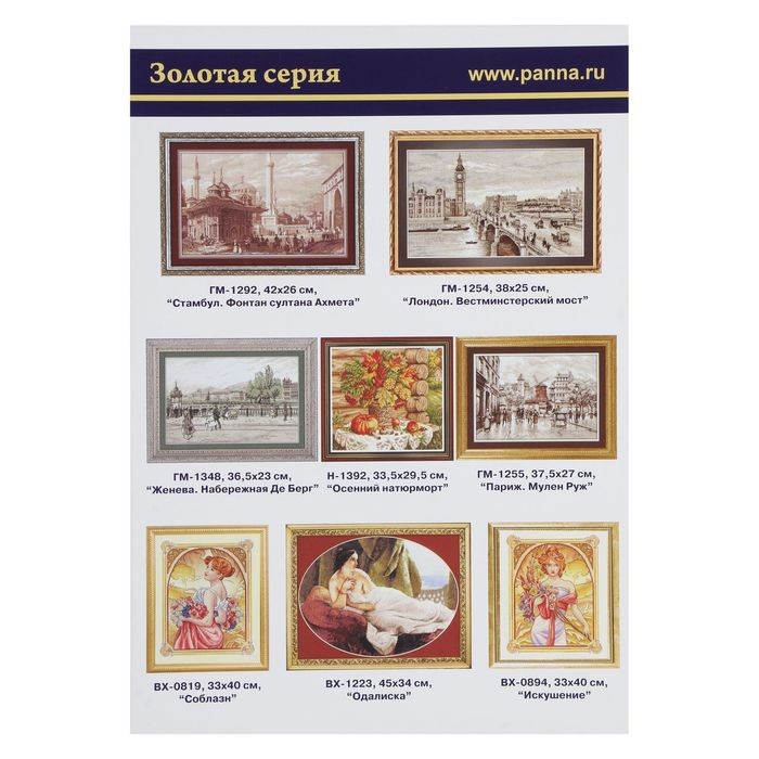 PANNA® — это наборы для вышивания российского производства, что определяет относительно невысокую цену набора. При этом набор состоит только из самых качественных компонентов. Всё это делает вышивки от PANNA® привлекательными для покупателя. |