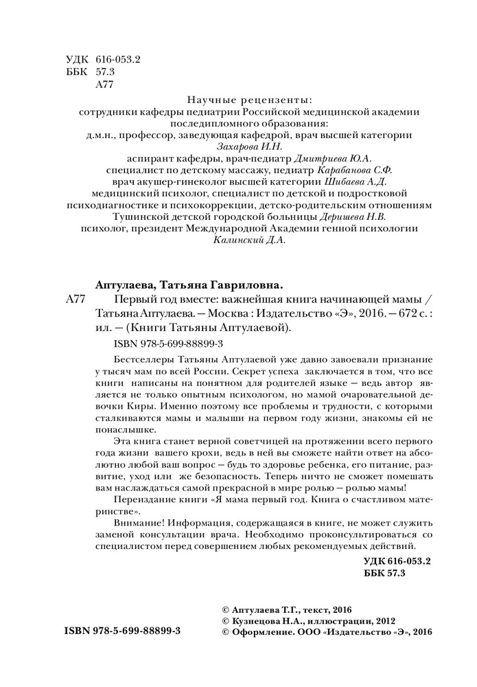 💳 Оплатить за товар можно при получении 🇰🇿 Есть бесплатная доставка по Казахстану 🎁 Копите бонусы с каждой покупки Серия: Книги Татьяны Аптулаевой Бестселлеры Татьяны Аптулаевой уже давно завоевали признание у тысяч мам по всей России. Секрет успеха заключается в том, что все книги написаны на понятном для родителей языке — ведь автор является не только опытным психологом, но мамой очаровательной девочки Киры. Именно поэтому все проблемы и трудности, с которыми сталкиваются мамы и малыши на первом году жизни, знакомы ей не понаслышке. |