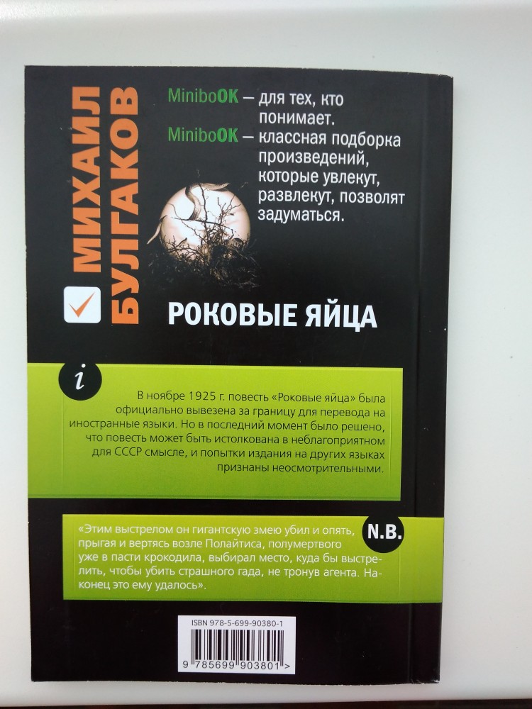 Роковые яйцаВ данный момент этот товар отсутствует в продаже. Возможно, у нас найдется аналогичный или похожий товар здесь. Серия: Minibook В книгу включена широко известная фантастическая повесть М. Булгакова «Роковые яйца». |