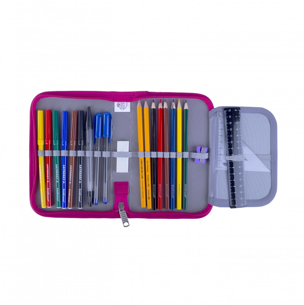 Красивый пенал, тоньше, чем наш прежний. Внутри все, что необходимо: карандаши, фломастеры, несколько ручек, линейка, ластик и т.д. Дочь очень рада!