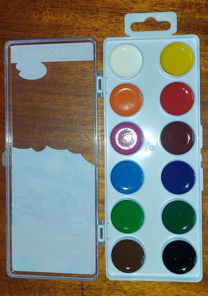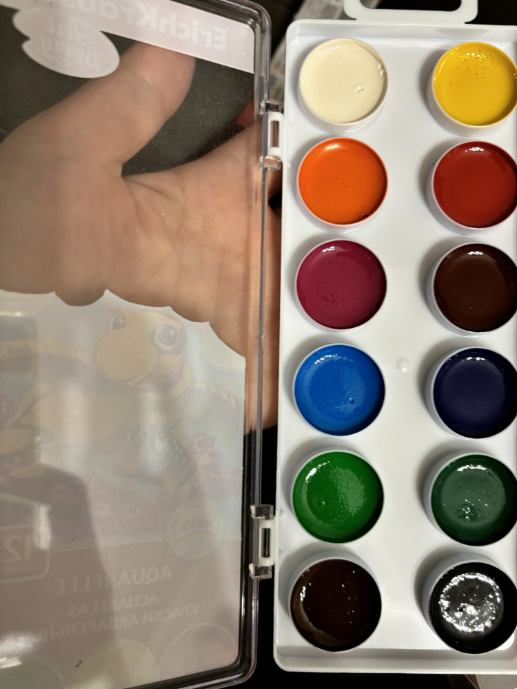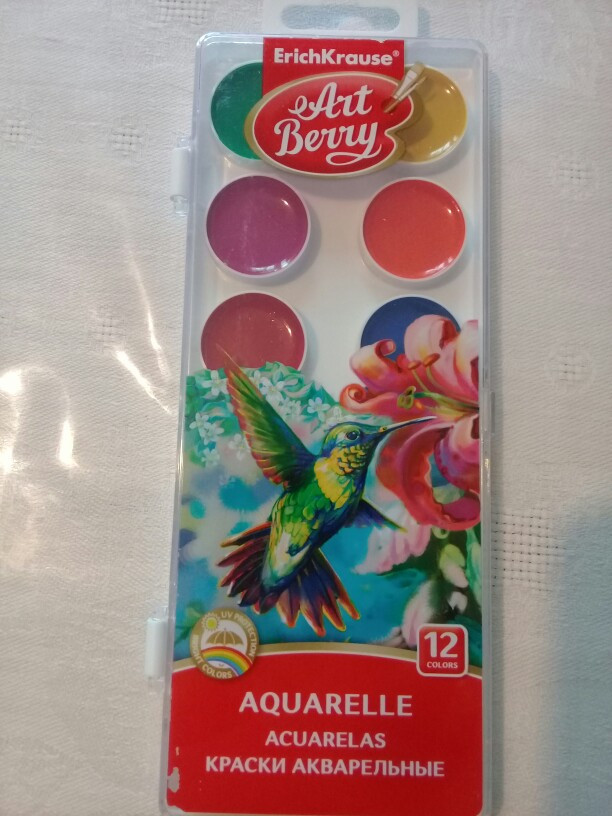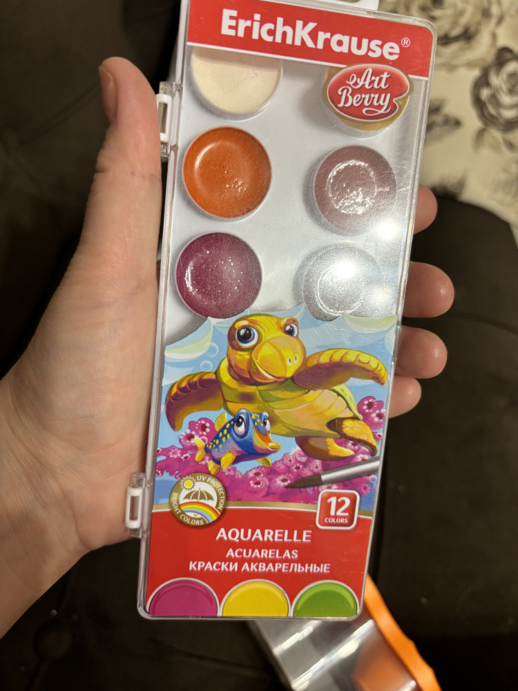Краски в целой упаковке, без постороннего запаха, цвета приятные. Взяла внучке, будем рисовать.
