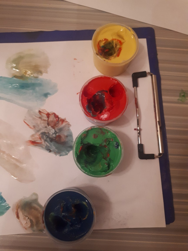 Очень густые краски. Ребенок окунув в них пальцы, самостоятельно их вытащить не может.