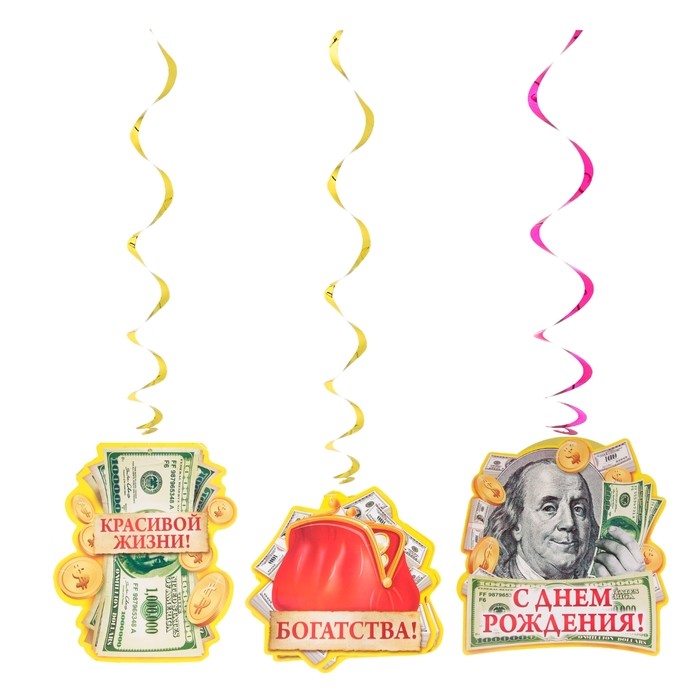 Набор гирлянд на спиралях «С днем рождения!» (Деньги)В данный момент этот товар отсутствует в продаже. Возможно, у нас найдется аналогичный или похожий товар здесь. Набор гирлянд на спиралях «С днем рождения!» (Деньги) с авторским дизайном и тёплым пожеланием создаст незабываемую атмосферу торжества! Украшение легко и удобно крепится в любом удобном месте за пластиковый крючок. Набор состоит из 3 изделий на блестящих спиралях, отличающихся оригинальной формой и яркой двусторонней печатью. |