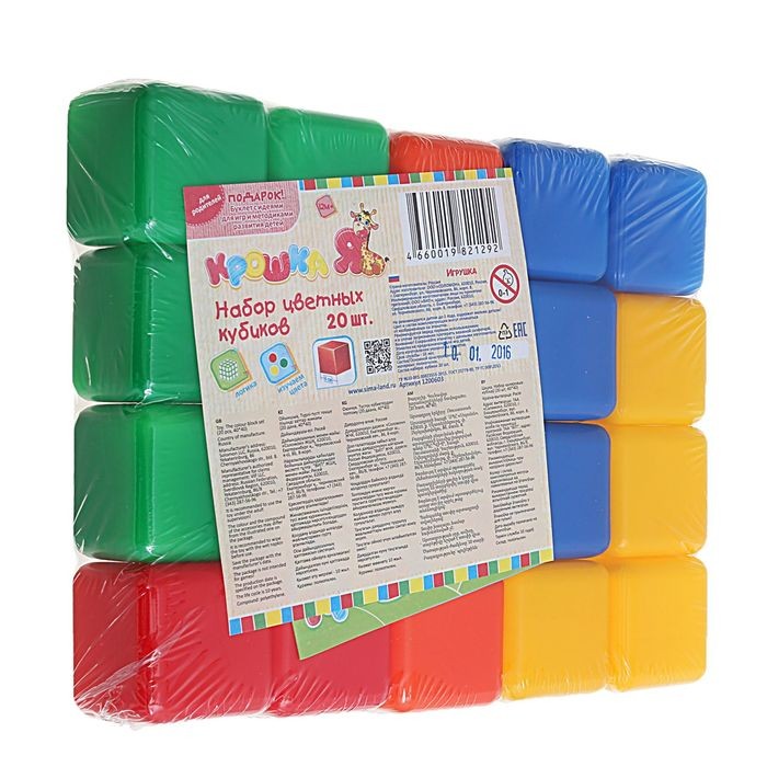 Крошка Я Набор цветных кубиков, 20 штук 4х4 см-25% +49 яркие цвета маленький размер без запаха плотный пластик удобно держать