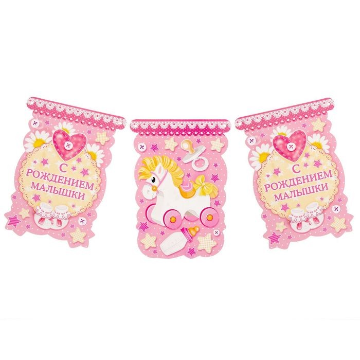 Гирлянда «С рождением малышки»В данный момент этот товар отсутствует в продаже. Возможно, у нас найдется аналогичный или похожий товар здесь. День рождения — особый праздник. Хотите оригинально украсить комнату или зал? Гирлянда «С рождением малышки» создаст особую атмосферу торжества в этот важный день. Оригинальная форма и яркая односторонняя печать делают её незаменимым атрибутом праздника. Изделие состоит из 10 «флажков» размером 15×20 см, скреплённых пластиковой нитью. Прикрепите гирлянду с помощью крючков, которые есть по бокам, или с помощью клейкой ленты и кнопок. Длина украшения 165 см. |
