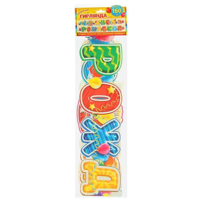 Красивая, яркая, но гирлянда ли? :-) В нашем случае я просто наклеила на стену в 2 строки. Воздушные шары и остальная атрибутика на ней будут уместно смотреться даже при оформлении тематического дня рождения.