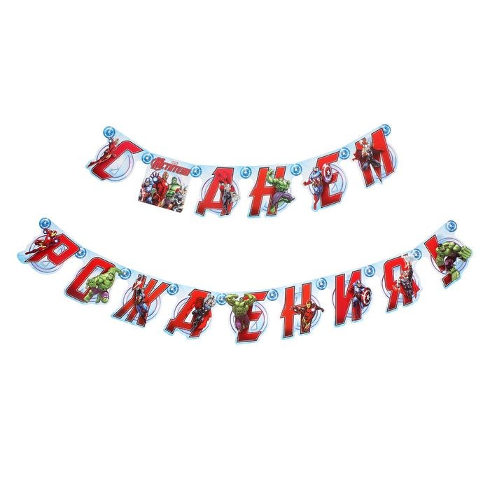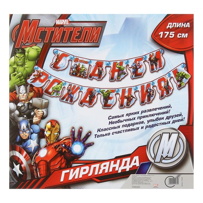 День рождения — особое событие для детей и их родителей. Гирлянда на люверсах «С Днем Рождения!» Команда Мстители, дл. 175 см украсит любое помещение и создаст незабываемую атмосферу торжества. Оригинальная форма, яркие цвета и любимые герои Marvel делают этот аксессуар важным атрибутом праздника. Флажки гирлянды скреплены люверсами. Повесить декор можно с помощью клейкой ленты или кнопок.