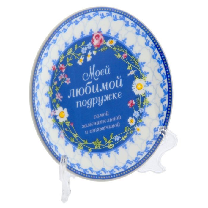 Тарелка декоративная «Любимой подружке» - скромный символ многолетней дружбы. Пусть дорогой человек смотрит на ваш подарок и с улыбкой вспоминает радостные моменты. В комплект входит подставка, так что изделие можно будет поставить на видное место и любоваться им.
